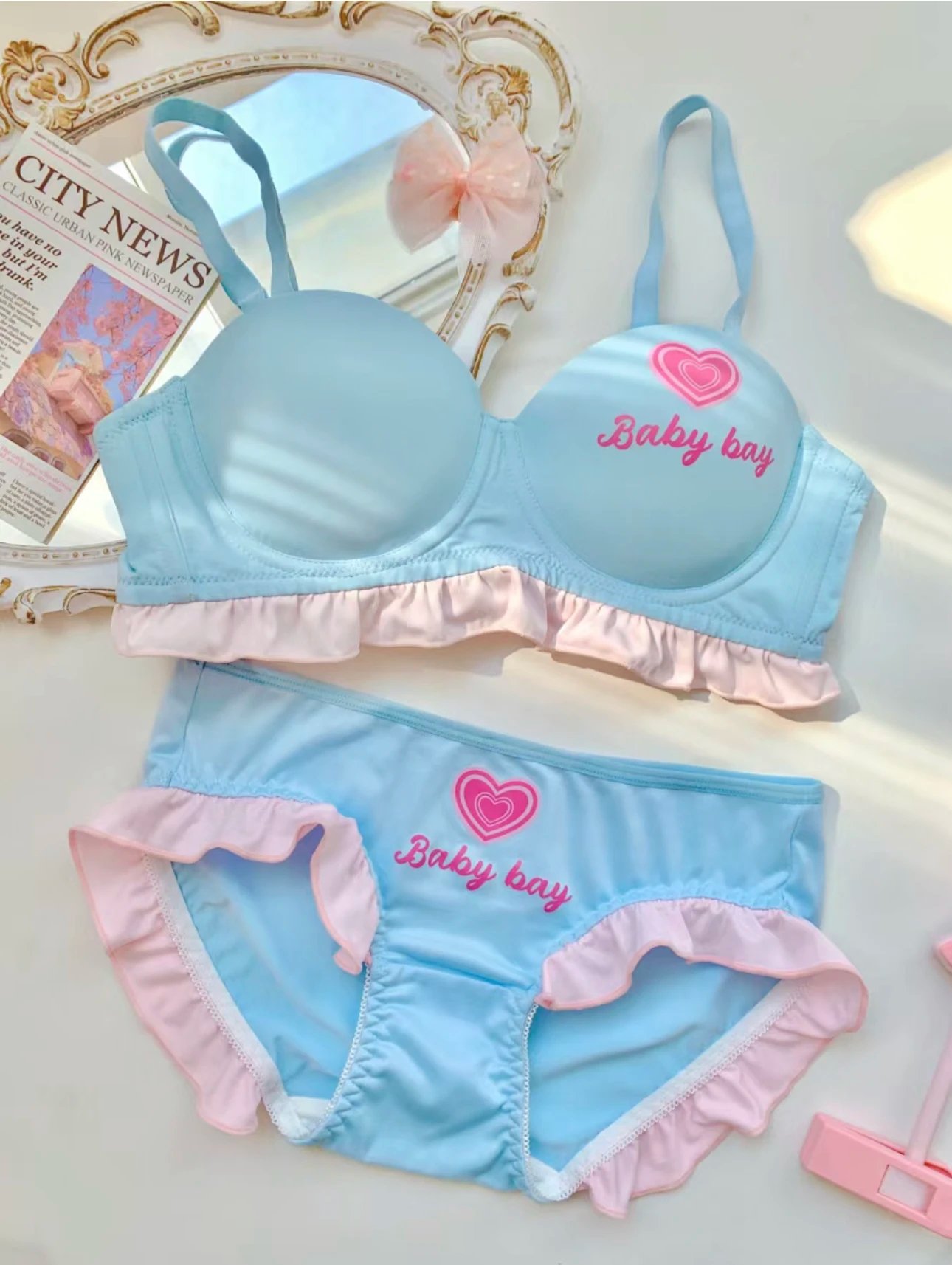 •Design: Heart Print with “Baby Bay” Text