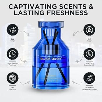 🔷Enhance your driving experience with the Black Odor 5-Star Hotel Fragrance Reed Car Perfume Diffuser. Designed with a premium glass bottle and elegant look, it delivers a slow and consistent fragrance that keeps your car fresh for a long time.