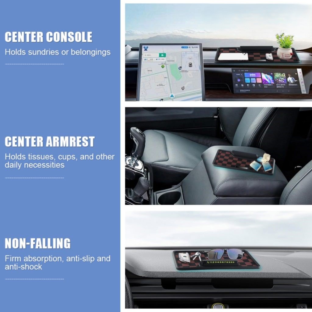 🔹This Car Dashboard Anti-Slip Mat keeps your car interior neat, organized, and secure. Made from high-quality anti-slip silicone, it firmly holds mobile phones, sunglasses, keys, coins, and small accessories without sliding while drivingcar dashboard anti slip mat, car parking number plate, dashboard organizer mat, car interior accessories, anti slip dashboard pad.