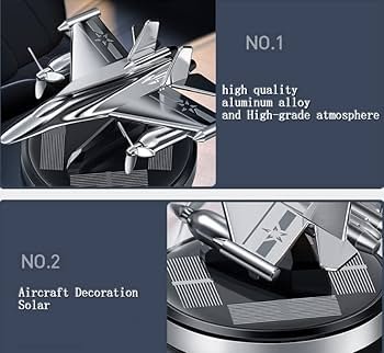 🔹Bring fresh and stylish vibes to your car interior with this Solar Powered Fighter Jet Air Freshener. Designed as a sleek aircraft dashboard ornament, it harnesses solar energy to rotate the propeller automatically without batteries, enhancing the aroma and visual appeal of your vehicle. Perfect as a car perfume diffuser, air deodorizer, and interior decor piece. A great gift for car lovers and those who enjoy refreshing drives!