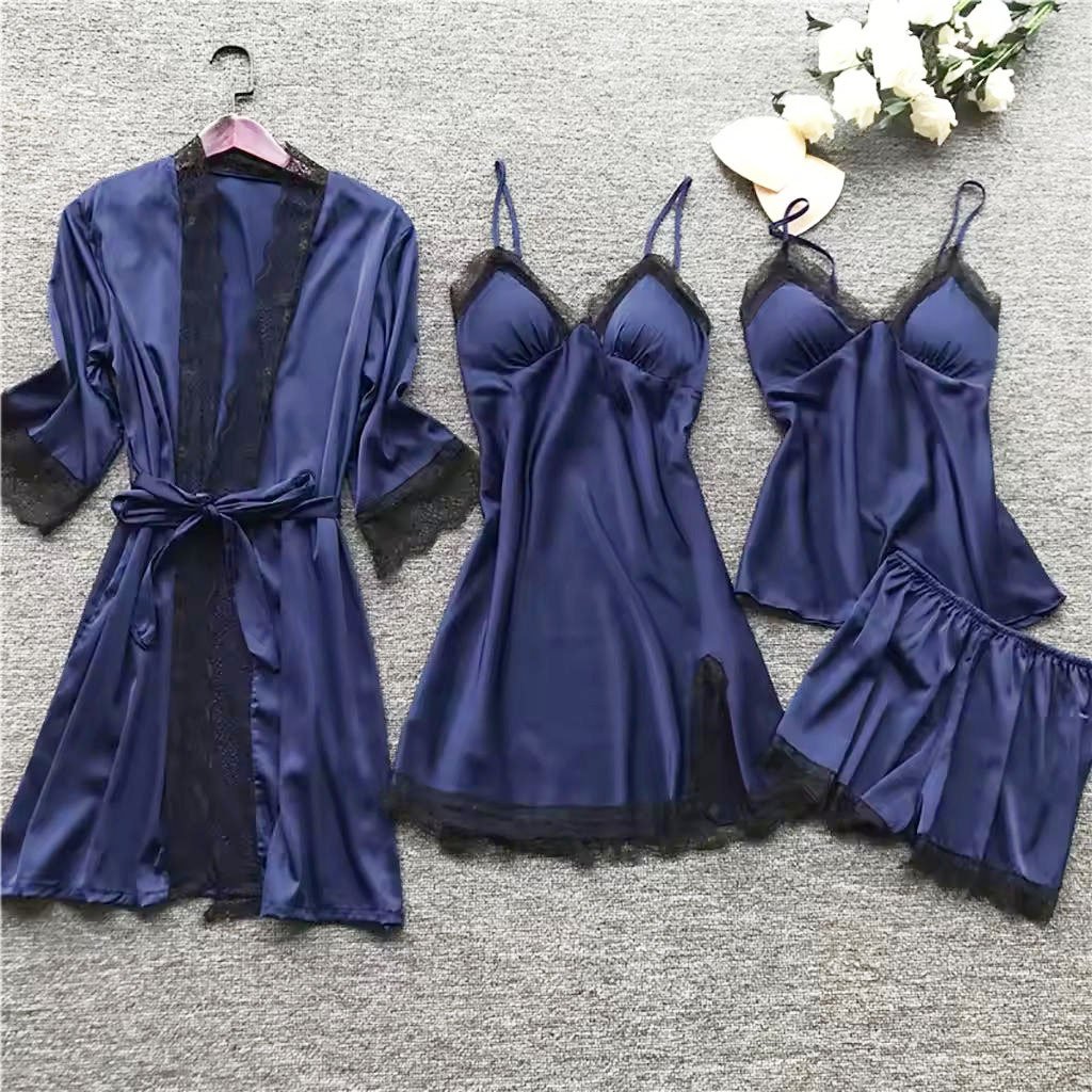 Women’s Satin Nightwear Set with Robe | Premium Silk Sleepwear 4 Pcs Set | নারীদের সাটিন নাইটওয়্যার সেট রোবসহ | প্রিমিয়াম সিল্ক স্লিপওয়্যার ৪ পিস সেট